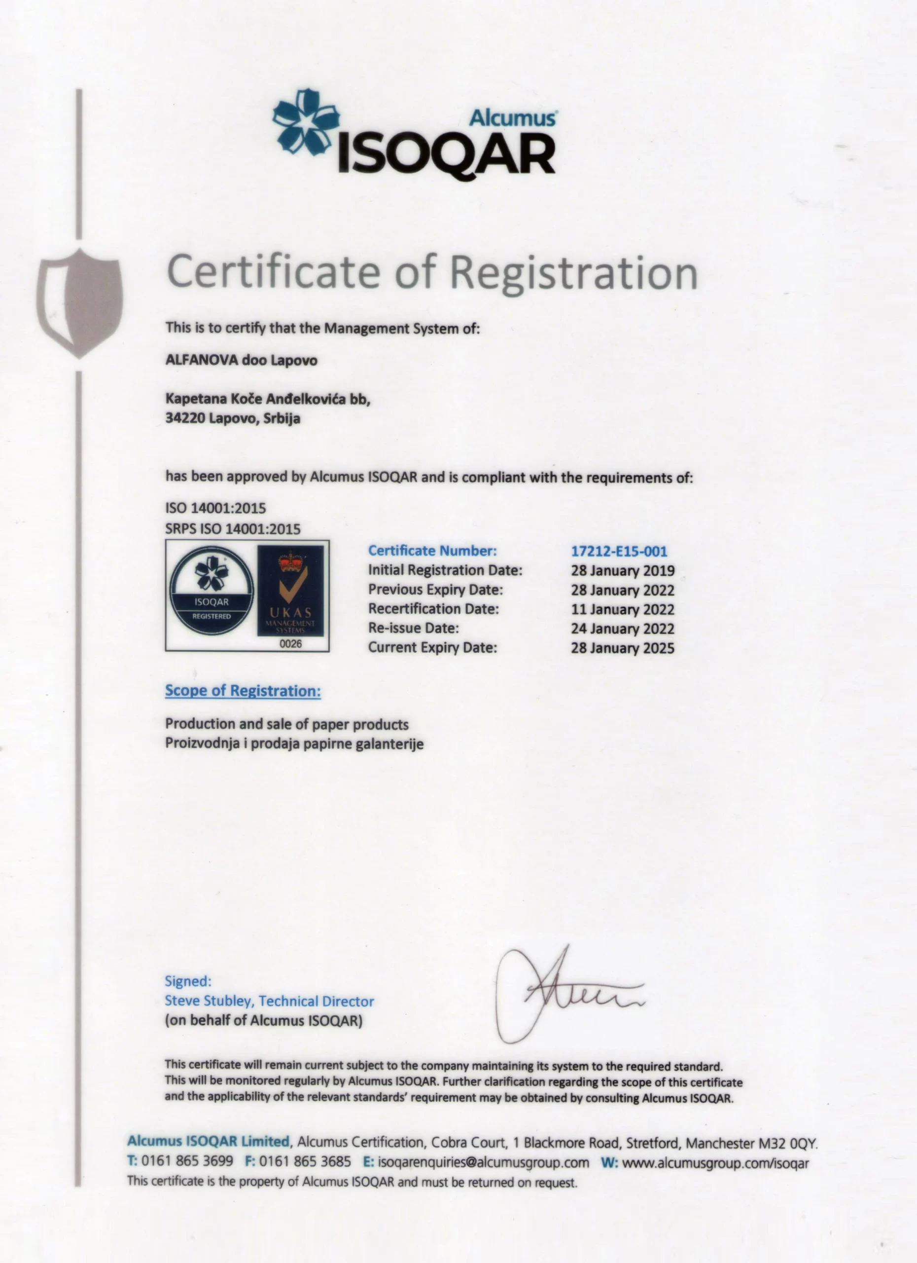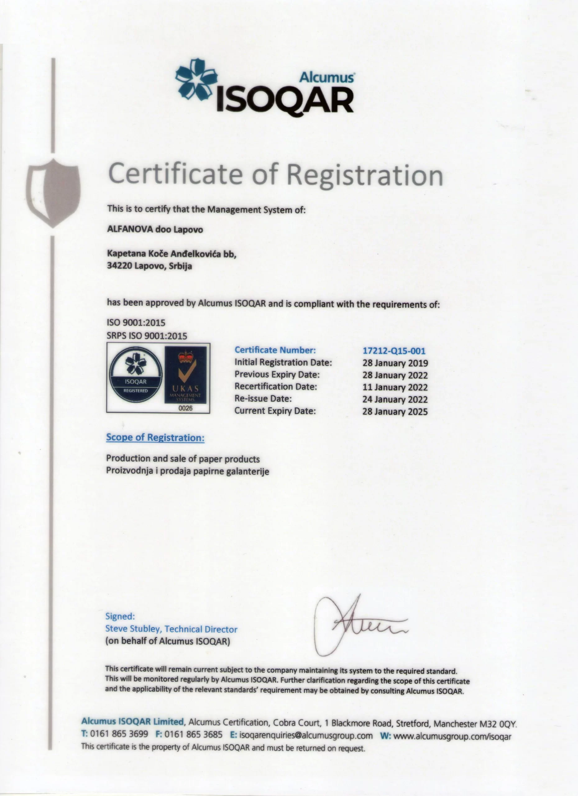 Kompanija Alfanova posluje u skladu sa međunarodnim standardima kvaliteta, uključujući ISO sertifikate, koji potvrđuju visok nivo kontrole proizvodnje i stalno unapređenje naših proizvoda.
